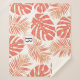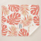 Coral and gold tropical leaves and monogram Sherpa blanket. This design features leaves of Split Leaf Philodendron (Monstera deliciosa) or Swiss Cheese Plant and palm leaves in living coral with gold outline.