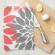 Coral and Grey Chrysanthemums Floral Pattern Tea Towel