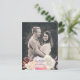 Custom photo wedding save the date postcard, with your picture covering the front of the card. Pretty coral, pink and ivory flowers line the bottom front of the card, with an oval custom text field. Personalise with your picture and text to suit your needs. Matching products are available.