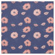 Beautiful patterned fabric of coral pink anemone flowers on navy blue