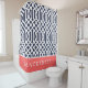 Coral and Navy Trellis Monogram Shower Curtain