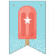 Designed to match our popsicle birthday party invitations, this cute summer bunting flag design features sixteen custom text fields to spell out your message (shown with "Happy Birthday"), with white lettering set on coral and pink popsicles. Blue and green backgrounds dotted with white confetti completes the design.