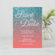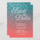 Coral and Teal Ombre Glitter Save the Date Invitation
