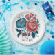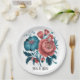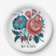 Coral and Teal Peonies Gold Bouquet Wedding Rings Paper Plate