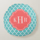 Coral and Turquoise Moroccan Quatrefoil Monogram Round Cushion