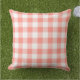 Pillow design features a casual gingham plaid / check pattern that is perfect for summertime! Note, you can customise the coral orange / pink background colour to coordinate with your outdoor decor.