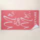 Coral and White Mr. and Mrs. Monogram Beach Towel