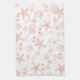 Starfish, shells, coral and anchors patterned towel in white and coral.