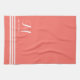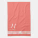Coral and White Sophisticated Stripes and Monogram Tea Towel