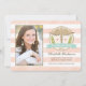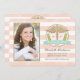 Add your favourite photo to these pretty, pale coral and white striped physical therapy school graduation announcements and party invitations with a snake caduceus symbol and a green laurel wreath and the letters DPT below it. Customise the aqua blue hued banner with the year of the graduate's graduating class year and your own wording on the back. The watercolor look peachy pink background is soft and feminine. A faux glitter look design outlines the circular logo and graduate's picture. The party invite can be personalised the future physical therapy scho graduate's name, degree, ceremony and party details. A future physical therapist graduating with a doctorate in physical therapy is sure to love these invites and announcements. Please, note, no 3D embellishments have been added to this invitation. The artwork was created to simulate the look of glitter and texture. Artwork and design © Chrissy H. Studios, LLC. All rights reserved. Photo credit: Susie Moore Photography