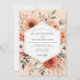 This design features a lush arrangement of painterly florals in a romantic palette. Soft shades of coral, terracotta, and warm peach blend beautifully with creamy white anemones and muted grey-green foliage. Delicate sprigs and leaves create a sense of depth and elegance. The overall mood is artistic, warm, and timelessly romantic for your special day.