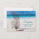This romantic design features a photo of a white sand beach with the ocean in beautiful shades of blue. Coral is artfully arranged with seashells. Swirls are the inspired by the waves of the water. Personalise this RSVP with the details of your upcoming wedding. These are great for beach theme or destination weddings.
