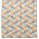 Honeycomb pattern shower curtain in shades of clay, coral, blue, and cream.