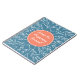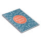 A lively coral circle on a calm blue background with an exuberant floral design of leaves makes this a lovely gratitude journal or anything else. You can customise the name and text to say anything you like.