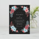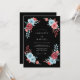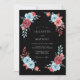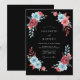 A darkly elegant design featuring clusters of painterly blooms in shades of deep coral and soft blue. Lush foliage in muted tones enhances the romantic, artistic feel. This palette evokes a sophisticated and charming atmosphere.