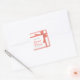 This bridal shower square sticker features a design that looks like an elegant gift. The background is coral coloured with a white dot pattern and the sticker has a graphic of a coral ribbon tied into a bow. The centre of the sticker is white and features customisable text for the bride's name and shower date.