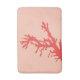 Bath mat in a Mixed media digital rendition of a coral branch in deep coral orange against a light coral orange background