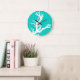 Coral branch - white on turquoise large clock