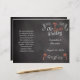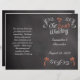 Fresh coral peach and white blackboard effect text with a slate grey background. Celebrate a ceremony by the seaside shore with this cool breezy palm tree and a sketched white chalk look. Nice rustic vintage feel at a beach wedding. Design Copyright © CustomInvitesOnline.com