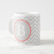 Enjoy your coffee in mass quantities with a Coral Chevron Monogram Jumbo Mug. Mug design features a light grey chevron pattern with a circle emblem outlined in coral. Additional items available with this design as well. Please contact me directly for assistance with personalisation.