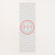 Personalise your own yoga mat with the Coral Chevron Monogram Yoga Mat. Yoga mat design features a light grey chevron pattern with a circle emblem outlined in coral. Additional items available with this design as well. Please contact me directly for assistance with personalisation.