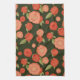 Coral coloured flower tea towel