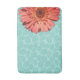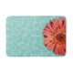 Add a burst of colour to your bathroom with this bath mat. It features a photo of a gerbera daisy in a bright coral colour set against a leafy mint green patterned background.