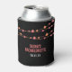 Can cooler features a multi-hued coral peach confetti garland on a black background with clean, modern block text.