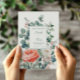 Coral Crush Peony and Eucalyptus Wedding Invitation