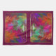 Brilliant orange, pink, blue, green, purple, yellow, and turquoise fractal patterns like a riot of coral, with decorative gold framing containing a single smooth gem.