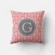 Coral Floral Damask Pattern Grey Monogram Cushion
