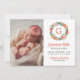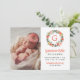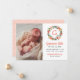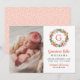 Coral Floral Initial Wreath Baby Girl Photo Birth Announcement