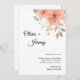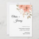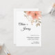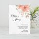 This is a pretty coral and green floral wedding invitation perfect for rustic weddings, country weddings and garden weddings. The top of the invitation is full of coral flowers surrounded by lush greenery. The bride and grooms names are front and centre on this simple but modern wedding invitation.