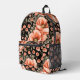 A large floral contemporary print with giant coral colour flowers and many small coral flowers. Leaves are silver sage and the background is chic black. Personalise. Seamless.