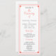A coral frame minimalist wedding ceremony details card that you can make your own by using the "customise this template" option to enter your wedding ceremony information. Coral coloured script and grey typography on a white background. Script and text on a clean and simple white background on the reverse.