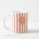 Coral French Beach Stripe Personalised Monogram Coffee Mug