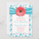 Coral Gerbera Daisy Aqua Floral Wedding Invitation