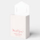 Coral gerbera daisy (gerber daisy) and subtle white lace personalised wedding thank you favour box. You can personalise the bride and groom's name and the wedding date. A pretty floral flower design. Perfect as a wedding favour box for a spring or summer wedding.