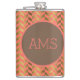 Coral & Gold Herringbone Monogram Hip Flask