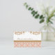 Elegant and beautiful french Moroccan tile inspired wedding table place cards with a repeating coral and gold geometric pattern design and gold hued french baroque style floral flourish border. Our upscale and luxe look table place cards are perfect for a Moroccan, Arabian Nights or Aladdin themed wedding. The front and back of these custom cards can be personalised with the names of the bride and groom and wedding date and a special message for your guests. Artwork and design © Chrissy H. Studios, LLC. All Rights Reserved.
