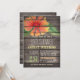 Baby Shower invitation featuring coral orange, green, yellow, red flower, floral design on rustic vintage country western, barn wood, wooden printed background with elegant, old fashioned style fonts. Perfect for country, farmhouse, farm, barnyard theme neutral boy or girl baby showers! This cute, fun invite is great year round for spring, summer, fall, or winter neutral baby showers!