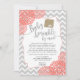 Coral Grey Floral Baby Sprinkle by mail Invitation