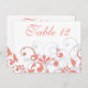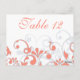The text and background colour on this coral, grey, and white wedding or special occasion table number card is fully customisable. To change it use the personalise option. For more extensive changes to the card including changes to the font, font colour, background colour, or text placement, use the customise option. This is a lovely and elegant table card for a spring or summer wedding or other special occasion.