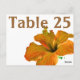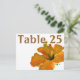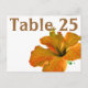 Tropical flower table number cards feature a coral coloured hibiscus and bronze tone font. Personalise both sides. Text may be personalised or deleted as well.