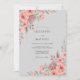 Delicate coral blossoms and muted foliage create a romantic, naturalistic aesthetic. This design evokes a soft, airy atmosphere with its prominent blush and earthy tones, ideal for a serene, botanical-themed occasion.