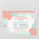 Floral Coral & Mint Blooms decorate this vibrant Baby Shower Invitation. The colours provide the perfect background for a Boy or Girl Shower. It can also be used for twins. The light grey chevron complements the modern typograhic layout of the invite. Also great for Bridal Showers and Brunches!