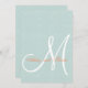 Rustic Wedding Invitation with Monogram Design -mint green, white and coral by Elke Clarke ©. Customise with your monogram initial and bride and groom first names on the front of the card. Add all your wedding information on the back of the card using Zazzle's easy to use menu prompts. Comes with blank white envelope. A simple versatile plain design with a which and coral text on a mint green linen background (printed photo effect).