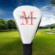 Custom printed golf head cover personalised with your name and monogram initial or other custom text. Use the design tools to choose any background colour, edit fonts and colours or upload your own photos to create a unique one of a kind gift for your favourite golfer.