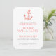 Elegant coral and white nautical floral anchor illustration over white customisable background, birthday party invitation template with reversed colours of coral and white on opposite side.