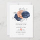 Coral, Navy and Silver Floral Wedding Invitation